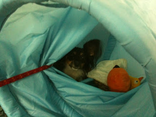 During the weekend, Rossi gal had a "drummie challenge". This is the biggest raw meaty bone I have given her so far. I'm glad to say she did pretty well on it. :)